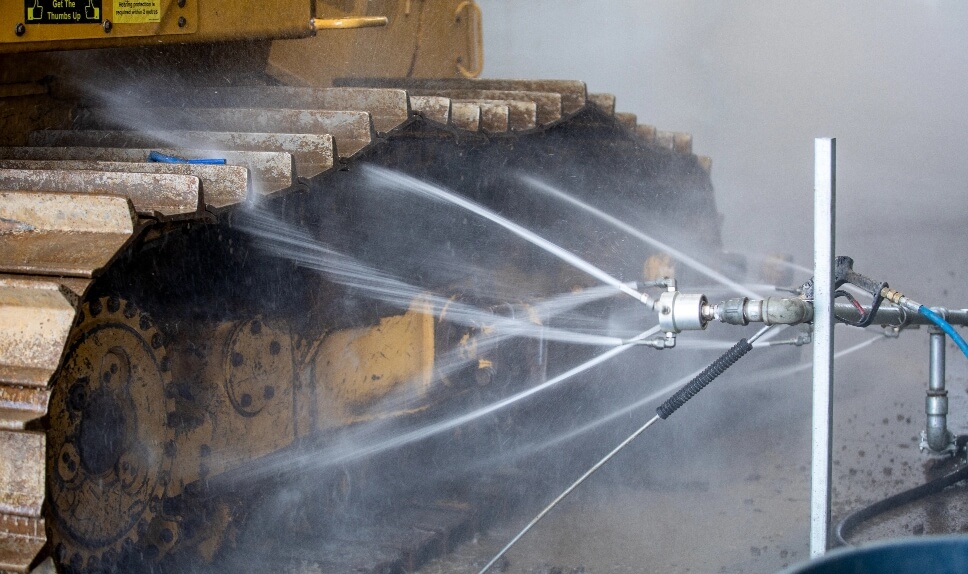 Our wash facility cleans and disinfects our equipment daily with its many cutting-edge features, such as twin 120-foot bays, an undercarriage auto spray system, rainwater capture from the roof, and water recycling capabilities. We recycle water by capturing dirty water and transferring it through settling pits, settling sediments and debris, and recycling it to be used for the next wash.